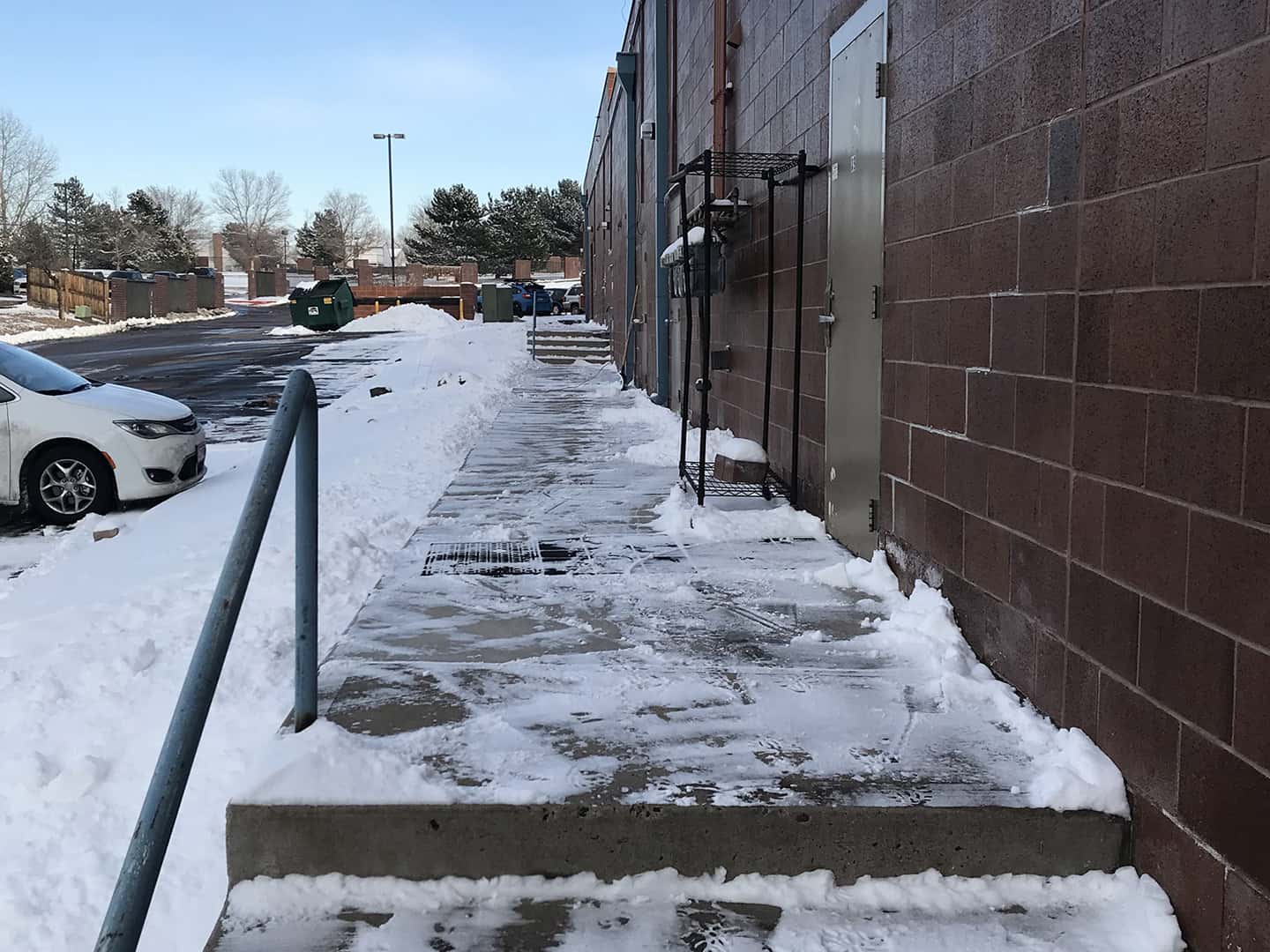 We then follow that up with our salting and de-icing services. These minimize the risk of falls, making sure your clients can come in safely, and protecting you from concerns about any accidents happening at work – ideal for everyone!